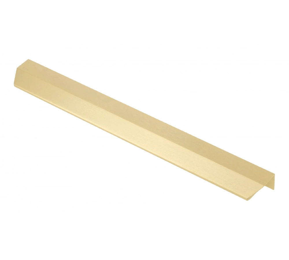 Ручка мебельная алюминиевая TREX CROSS 320/350 светлое брашированное золото - популярный вариант лицевой фурнитуры, для которого характерна простота конструкции и высокая надежность. При установке ручка накладывается на торец фасада.
