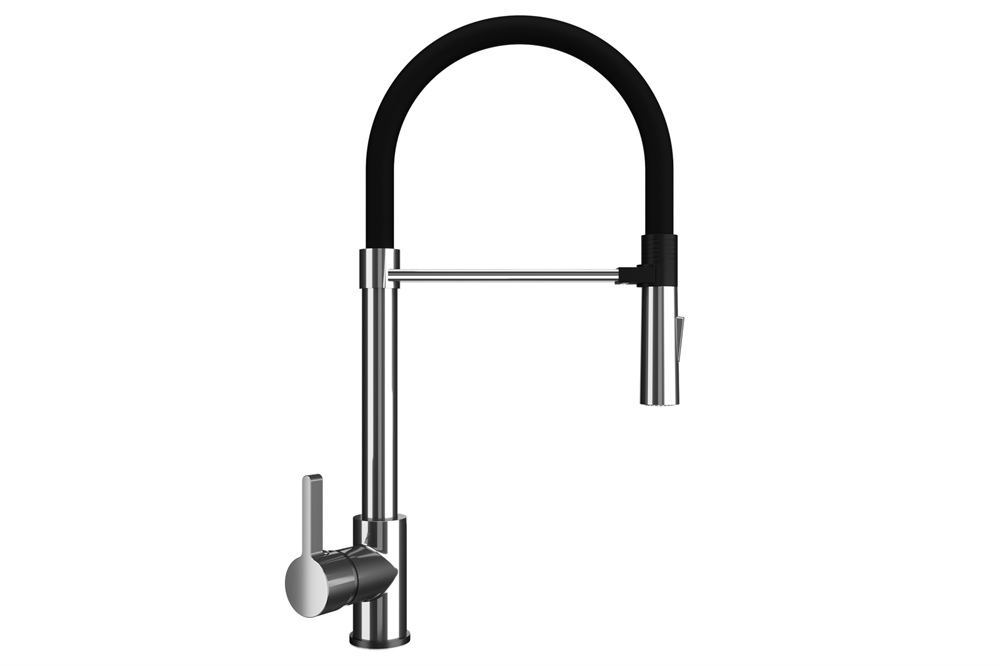 Смеситель ULGRAN U-024 – это стильный и современный кухонный смеситель с высоким гибким изливом черного цвета. Материал корпуса выполнен из высококачественной латуни, сверху корпус смесителя имеет специальное черное матовое покрытие.